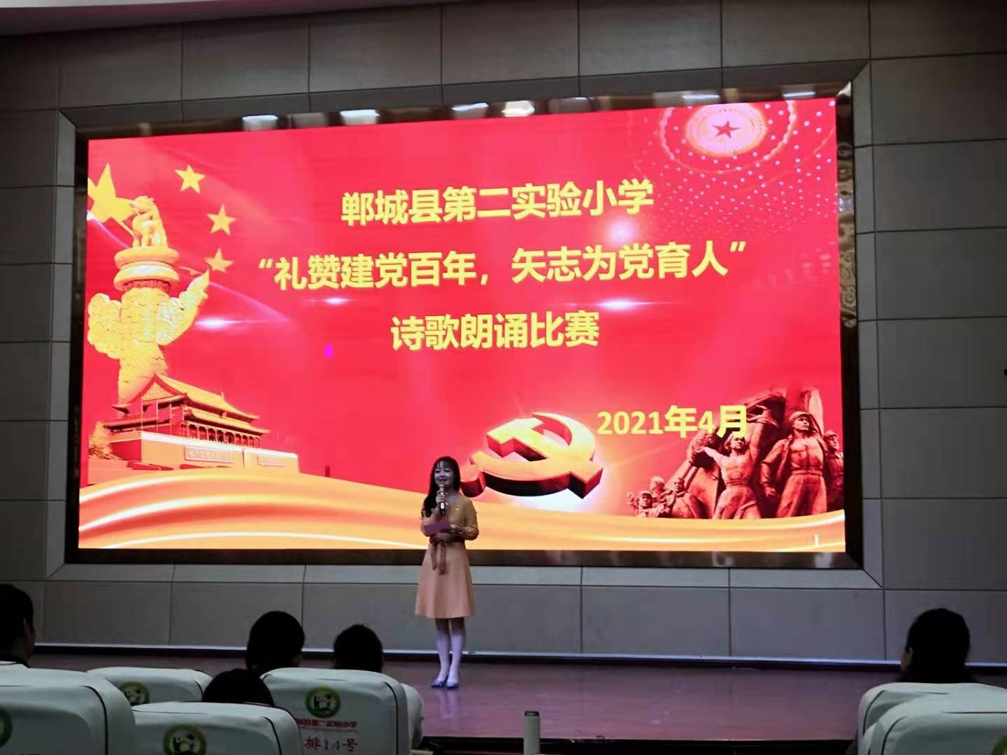 4月14日,鄲城縣第二實(shí)驗(yàn)小學(xué)舉行關(guān)于“百年榮光·每個(gè)人都了不起”系列主題活動(dòng)——獻(xiàn)禮建黨100周年詩(shī)歌朗誦比賽。26位教師分10支代表隊(duì)參賽。