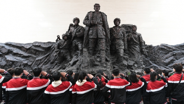 在甘肅省白銀市會寧縣紅軍會寧會師舊址內(nèi),有一座高33.33米,呈三塔環(huán)抱雄姿的紀念塔——中國工農(nóng)紅軍第一二四方面軍會師紀念塔。