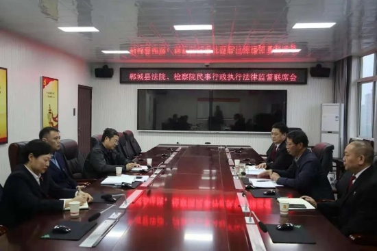 為進(jìn)一步推動(dòng)教育整頓工作,認(rèn)真落實(shí)省院、市院關(guān)于開(kāi)展民事行政執(zhí)行法律監(jiān)督專項(xiàng)活動(dòng)的要求,推動(dòng)民事、行政檢察工作順利開(kāi)展,解決人民群眾反應(yīng)強(qiáng)烈的執(zhí)行難、執(zhí)行亂等問(wèn)題,4月20日下午,鄲城縣檢察院黨組書記、代檢察長(zhǎng)陸智明和縣院黨組成員、副檢察長(zhǎng)馬立強(qiáng)以及第四檢察部員額檢察官李平會(huì)同縣法院有關(guān)領(lǐng)導(dǎo)召開(kāi)了民事行政執(zhí)行法律監(jiān)督聯(lián)席會(huì)??h法院黨組書記、院長(zhǎng)王洪彬應(yīng)邀出席會(huì)議。