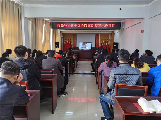 為進一步加強黨風廉政建設,持續(xù)推進以案促改制度化常態(tài)化,4月26日下午,市商務局組織局機關及二級機構全體人員,集中觀看以案促改警示教育片《正風反腐就在身邊》第四集《嚴正家風》,不斷提升黨員干部廉潔自律和拒腐防變意識。
