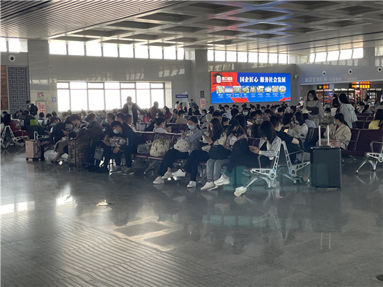 1.5月5日,周口東站旅客發(fā)送將高位運行。車站落客平臺以及車站周邊相關(guān)市政道路可能出現(xiàn)車流高峰和擁堵,請各位旅客關(guān)注實時路況信息,合理選擇出行線路、出行方式和出行時間,避開出行高峰時段和易擁擠路段,提前一到兩個小時到站候車,同時因車站候車廳旅客候乘量有限,請廣大旅客不要過早到站。