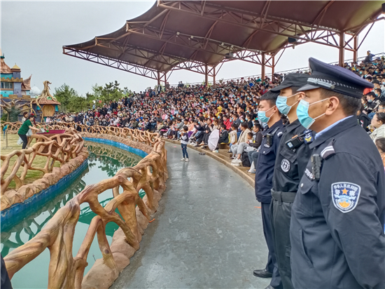 “接受游客求助、及時(shí)調(diào)解糾紛、處理園內(nèi)外各類突發(fā)事件……”在一天緊張而繁忙的工作中,民警顧不上休息,堅(jiān)守在景區(qū)一線,用自己的辛苦和汗水,換來了游客的游園安全,為游客創(chuàng)造了良好的治安環(huán)境。