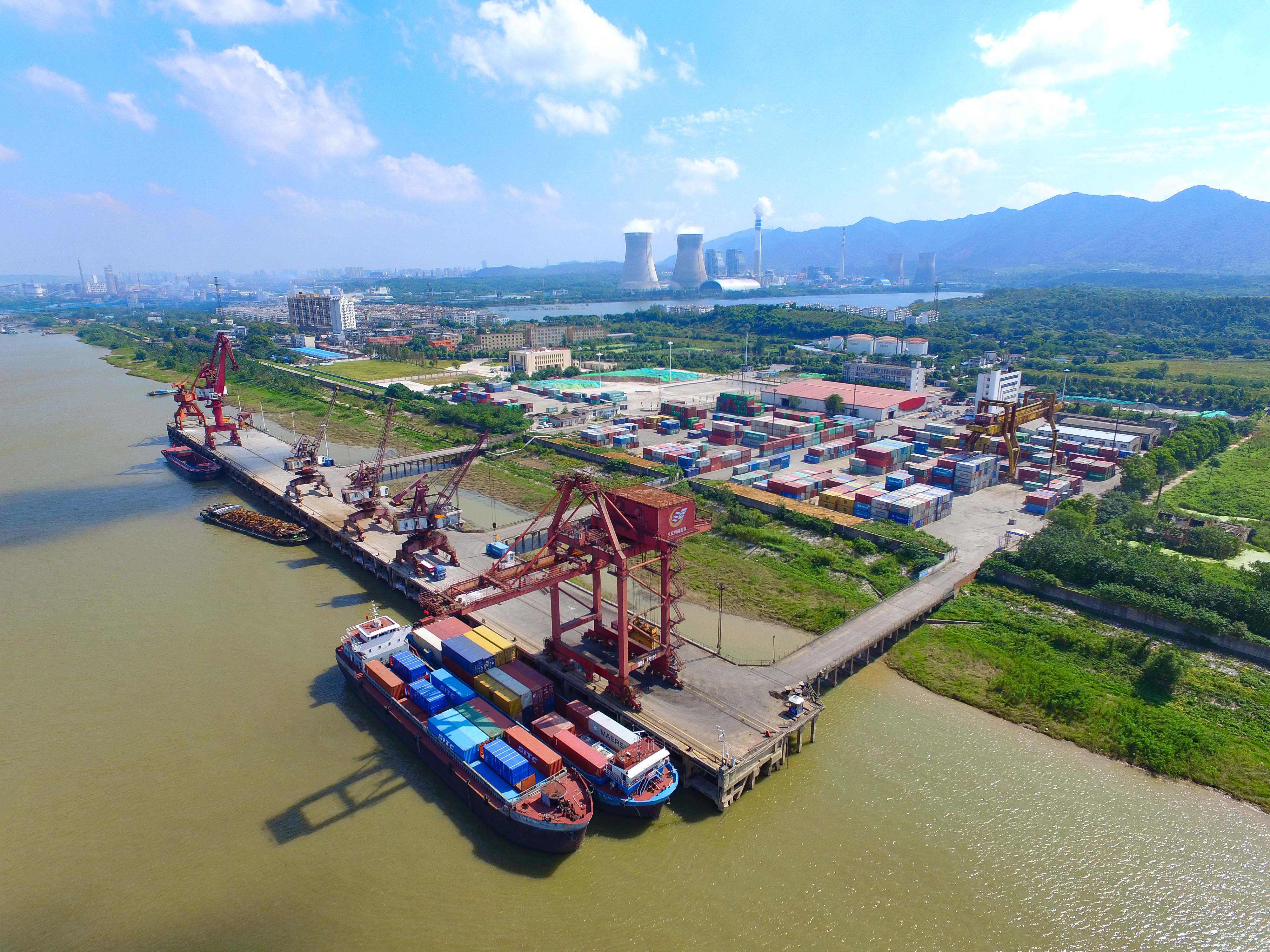 圖3:在安徽銅陵港長江外貿(mào)碼頭,港口機械在裝卸集裝箱物資。安徽銅陵是我國重要的銅工業(yè)基地,銅陵港是長江萬噸級輪船終點港。銅陵日報記者 詹俊 攝