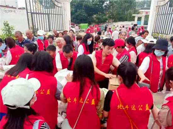 不一會(huì)兒,在志愿者組織下,來到現(xiàn)場(chǎng)的老人們便依次排隊(duì)領(lǐng)取了物品,滿臉充滿笑容?!懊看温犝f北斗達(dá)的孩子們過來給我們包餃子吃,我都高興得一宿睡不著覺。得知今天孩子們給我們送餃子和粽子吃,我就起了個(gè)大早,別提心里多高興了。”65歲村民李大爺手提著領(lǐng)到的水餃和粽子高興地對(duì)記者說。