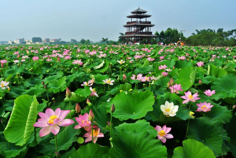 圖2:“接天蓮葉無窮碧,映日荷花別樣紅”的AAAA級荷美覃塘景區(qū)。圖片由貴港日報社提供