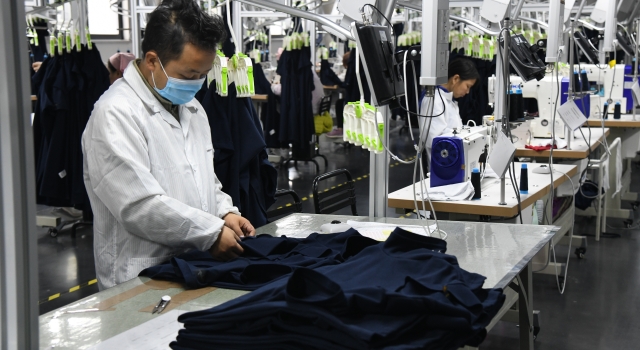 ?9月12日,一家服裝加工企業(yè)車(chē)間內(nèi),工人們?cè)谮s制訂單。
