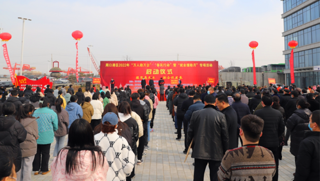 2月22日,周口港區(qū)舉辦2022年“萬(wàn)人助萬(wàn)企”“春風(fēng)行動(dòng)”暨“就業(yè)援助月”啟動(dòng)儀式,通過(guò)舉辦一系列活動(dòng),為企業(yè)和求職者牽線搭橋。港區(qū)黨委書(shū)記孫鵬宣布啟動(dòng)儀式開(kāi)幕,管委會(huì)主任胡軍華在儀式上致辭,港區(qū)領(lǐng)導(dǎo)杜廣賢、劉學(xué)慶、李素芹參加活動(dòng)。