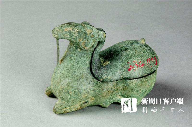 原來這件漢代臥羊銅燈白天是個精致擺件,晚上掀開器蓋,引上捻子,點上燭火,就秒變燈具。該燈分上下兩部分,羊頸下部設(shè)一活動樞紐與軀體相連結(jié),羊背做成可翻轉(zhuǎn)至頭頂?shù)臒舯P,背部上掀可以打開,可盛油點燈,引芯可燃。燈盤放下后又與羊體吻合,余油自動流入腹腔存放。古人用油一般是植物油或動物油,用蓋子一可防止不用時油料揮發(fā),二能防止老鼠偷喝,三能把未燃盡的油再利用。漢代臥羊銅燈整體構(gòu)思精巧細致,造型新穎。一盞小小的燈都能精細到這種程度,漢代的工藝制作水平由此可見一斑。