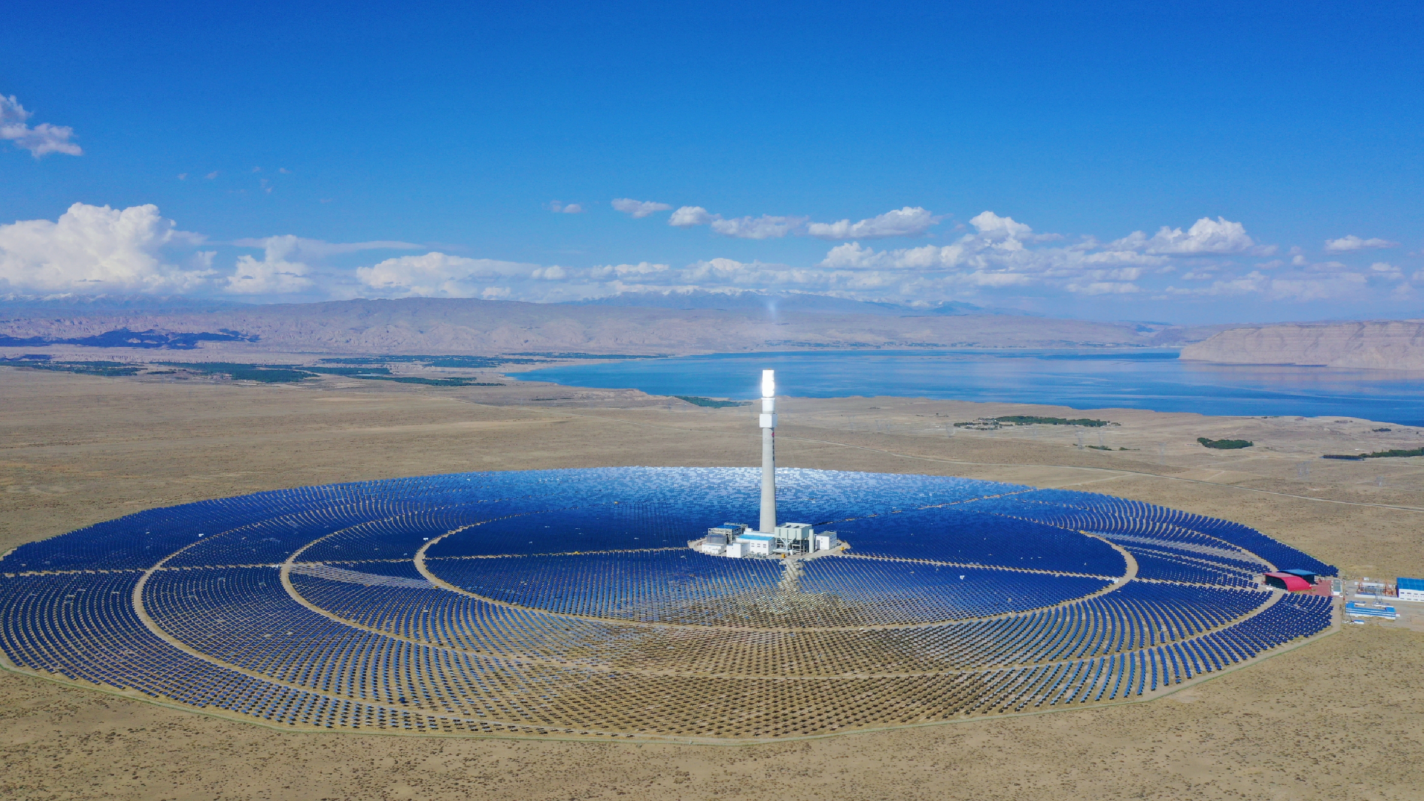 圖5:5萬(wàn)千瓦熔鹽塔式光熱發(fā)電項(xiàng)目。(中電建青海共和50MM塔式光熱發(fā)電項(xiàng)目部)
