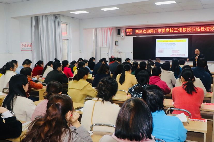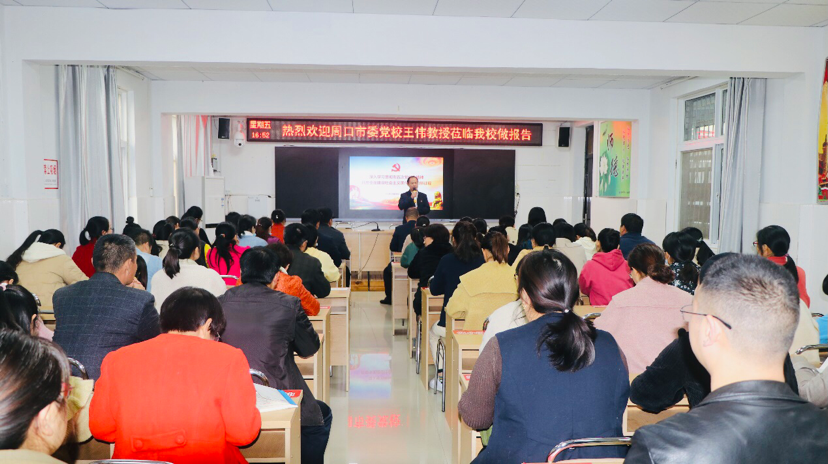 宣講會上,市委黨校宣講團講師王偉以“深入學(xué)習(xí)貫徹市五次黨代會精神、開啟全面建設(shè)社會主義現(xiàn)代化周口新征程”為主題,從充分認識市五次黨代會的重大意義、準(zhǔn)確把握市五次黨代會的精神要義、全面落實市五次黨代會的目標(biāo)任務(wù)三方面,詳盡解讀了市五次黨代會主旨報告的精神實質(zhì)和豐富內(nèi)涵。整場報告脈絡(luò)清晰、論述深刻、內(nèi)容豐富,既有深入淺出的理論闡述,又有結(jié)合我市發(fā)展的實例分析,更有教育實踐層面的對策思考,為該校教職工深入、完整、系統(tǒng)地領(lǐng)會市五次黨代會精神,有力推進貫徹落實黨代會精神提供了一把“金鑰匙”。