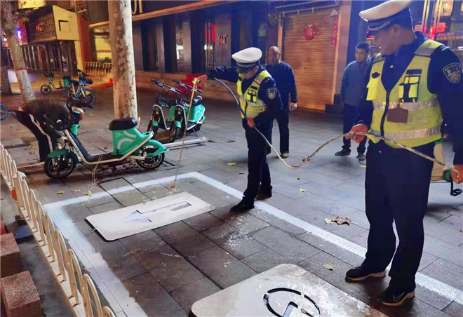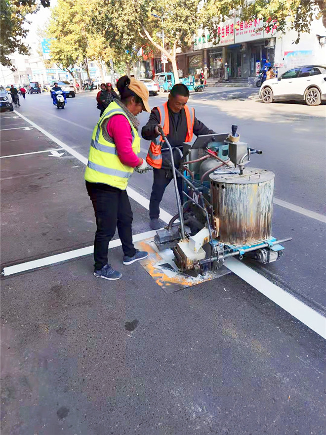 10月26日晚6時(shí)許,在周口大道與文體路交叉口附近,幾名工作人員正在使用熱熔畫線機(jī),對(duì)路面上不太清晰的斑馬線進(jìn)行重新施劃?!奥访鏄?biāo)線是公路的‘無(wú)言哨兵’,覆畫后的道路交通標(biāo)線醒目美觀,一方面消除了安全隱患,保障了交通安全和暢通,另一方面也極大地美化、扮靚了沿線路域環(huán)境,成為城市文明的一道風(fēng)景線?!痹撠?fù)責(zé)人說(shuō)。
