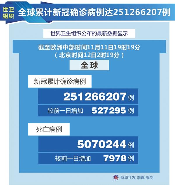 世衛(wèi)組織全球累計新冠確診病例達251266207例