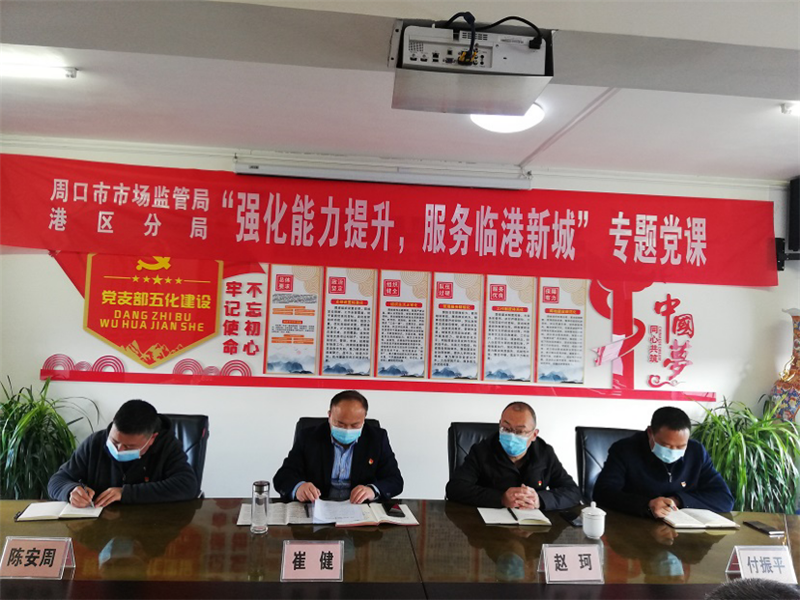 周口市市場監(jiān)管局港區(qū)分局召開“強化能力提升 服務(wù)臨港新城”專題黨課