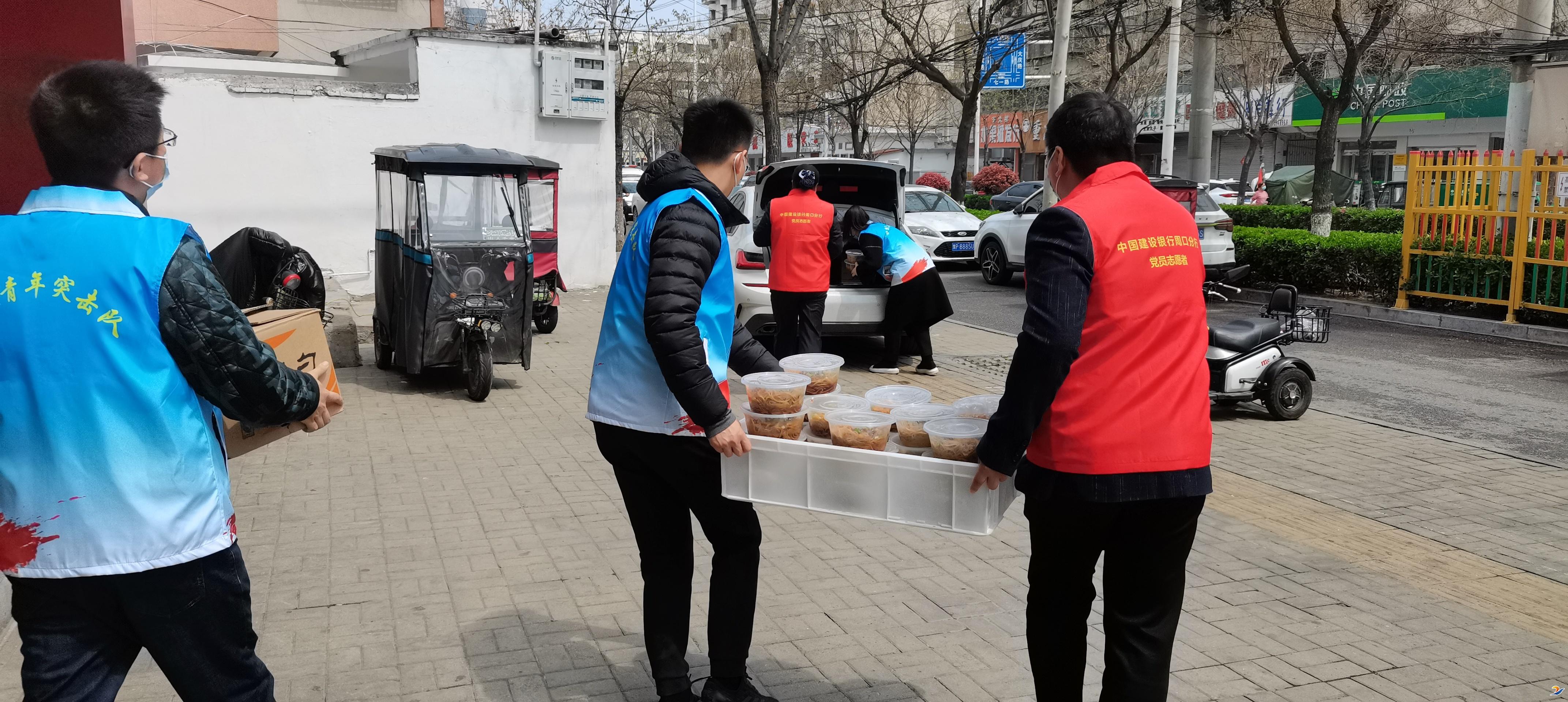建行周口分行團(tuán)委書記張聰穎說:“疫情發(fā)生后,我們建行就一直想為疫情防控貢獻(xiàn)力量,得知咱們的卡點工作人員吃飯成了問題,就組織我們的青年志愿者和愛心餐飲店一起開展了這次愛心送餐活動。我們將持續(xù)為抗擊疫情作出貢獻(xiàn),也相信通過大家的共同努力,疫情會早日過去?!?周建行)②8