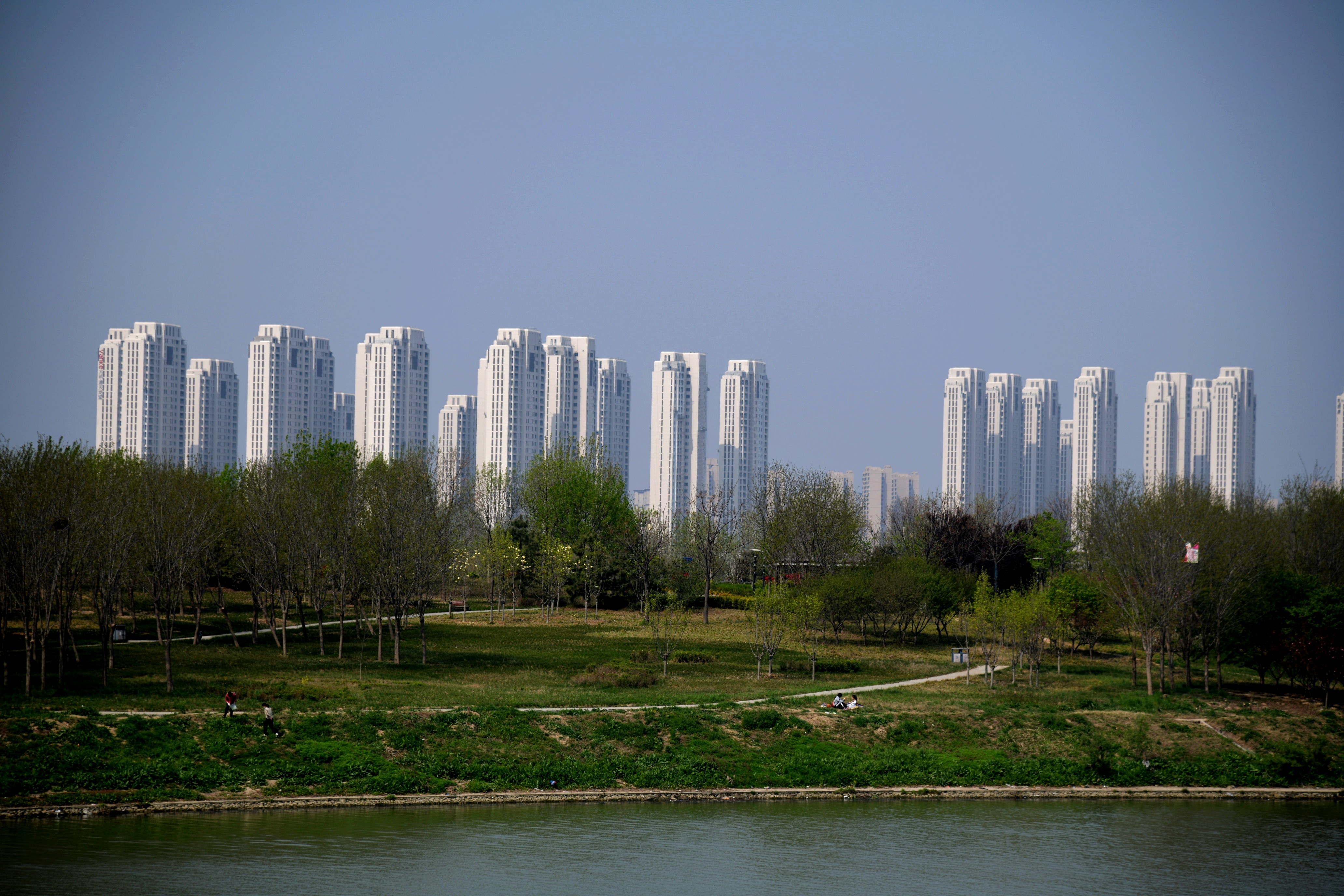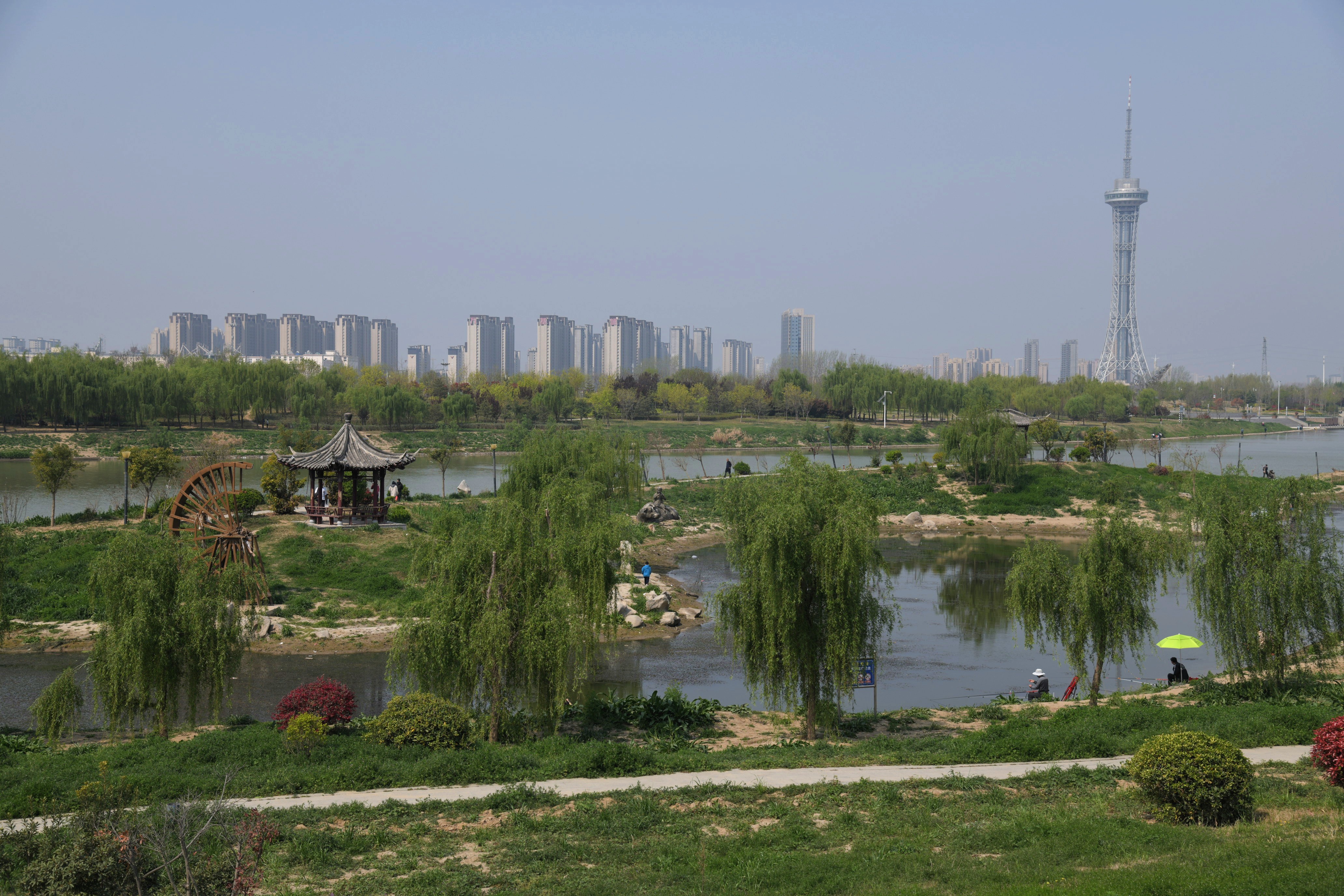 4月5日,市民在沙潁河畔休閑游玩。