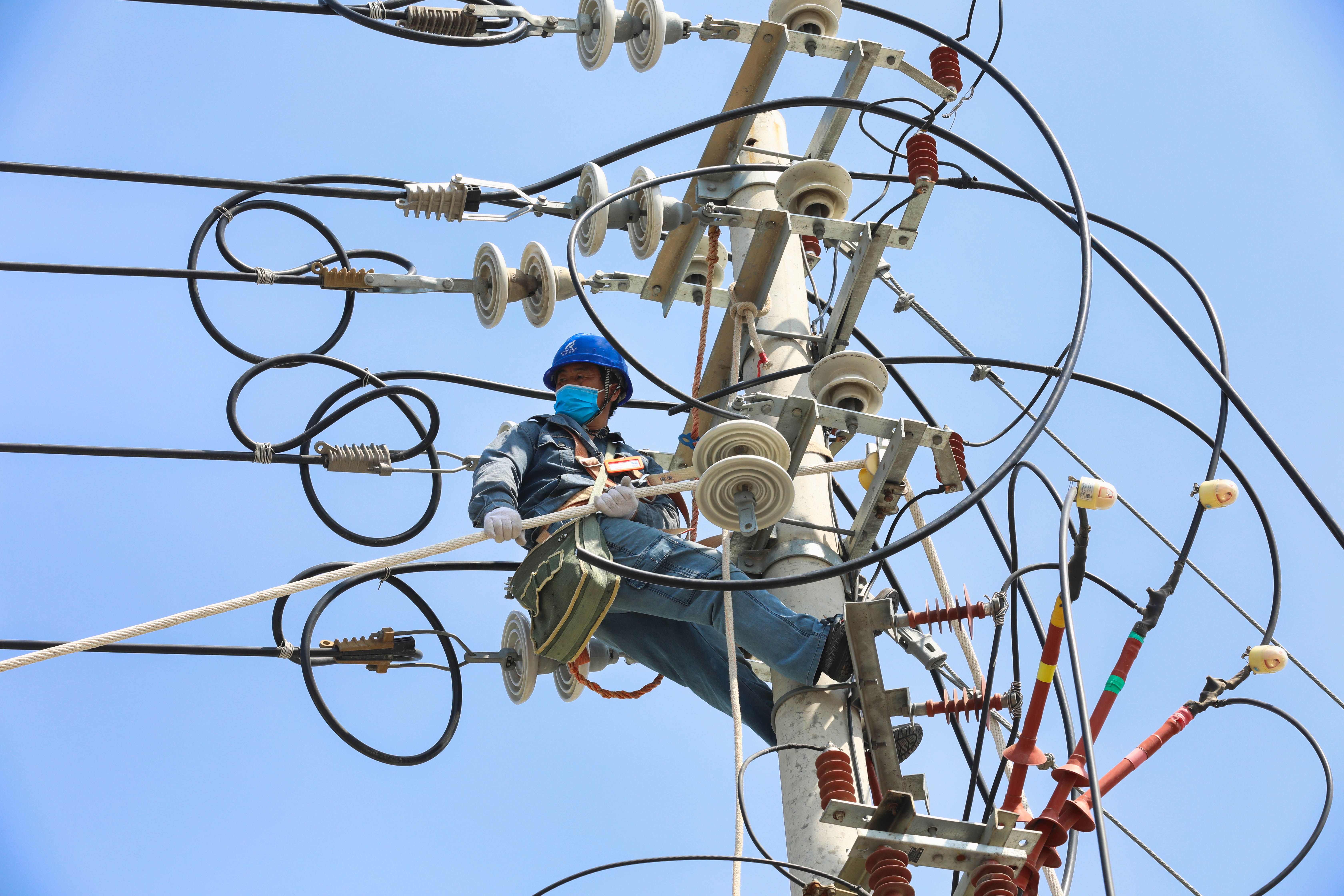 加裝故障指示器,進(jìn)行缺陷消除、絕緣恢復(fù)、導(dǎo)線更換、清理樹障等,桿塔上、線路間,隨處可見施工人員緊張忙碌的身影。