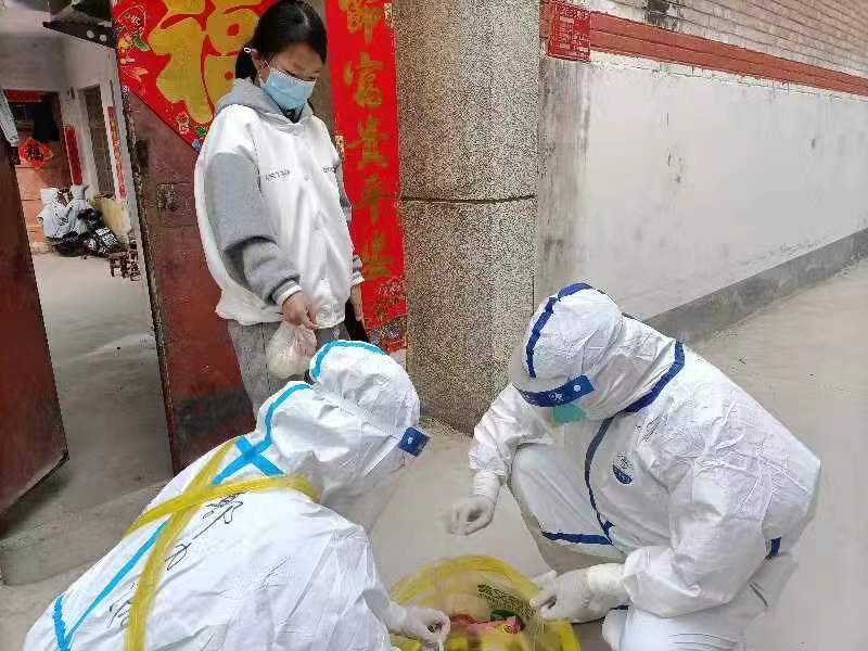 到達(dá)太康后,王群禮被分到了城關(guān)回族鎮(zhèn)封控區(qū)進(jìn)行入戶核酸采集,當(dāng)時(shí)的他也很緊張,認(rèn)真地穿防護(hù)服,熟記采集核酸的每一個(gè)動(dòng)作要領(lǐng),然后投身抗疫最前線。在入戶采樣的時(shí)候,王群禮發(fā)現(xiàn)有一個(gè)小女孩獨(dú)自在家,她每次聽(tīng)到敲門聲都是先開(kāi)一點(diǎn)縫,悄悄觀察外面,當(dāng)看到是防疫人員時(shí),才慢慢打開(kāi)門?!拔铱梢钥闯鏊目謶趾蜔o(wú)助,不知道她晚上怕不怕,會(huì)不會(huì)做飯,問(wèn)她怎么吃飯,她也不說(shuō)話,我心里很不是滋味?!睆哪翘扉_(kāi)始,王群禮每次入戶采核酸的時(shí)候,就幫她帶點(diǎn)吃的,王群禮會(huì)把他的早餐留給她,還把自己的水果、零食也都送給她。