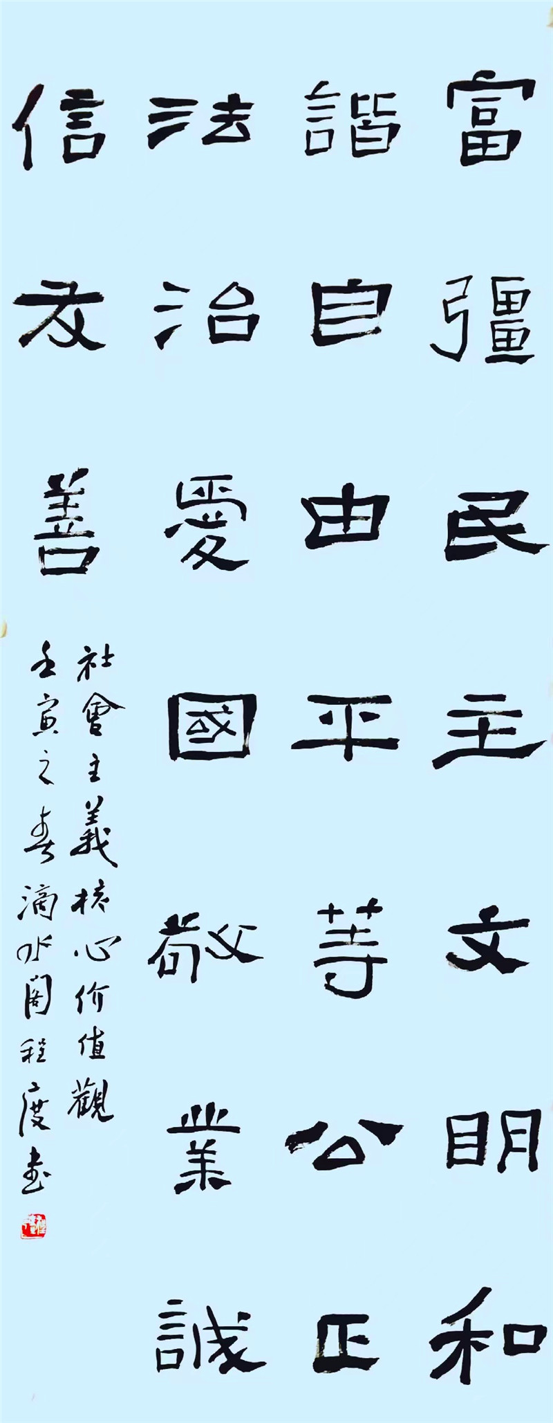 程度 中國書法家協(xié)會理事、隸書委員會委員,北京書法家協(xié)會理事,北京市朝陽區(qū)書法家協(xié)會秘書長(社會主義核心價值觀)