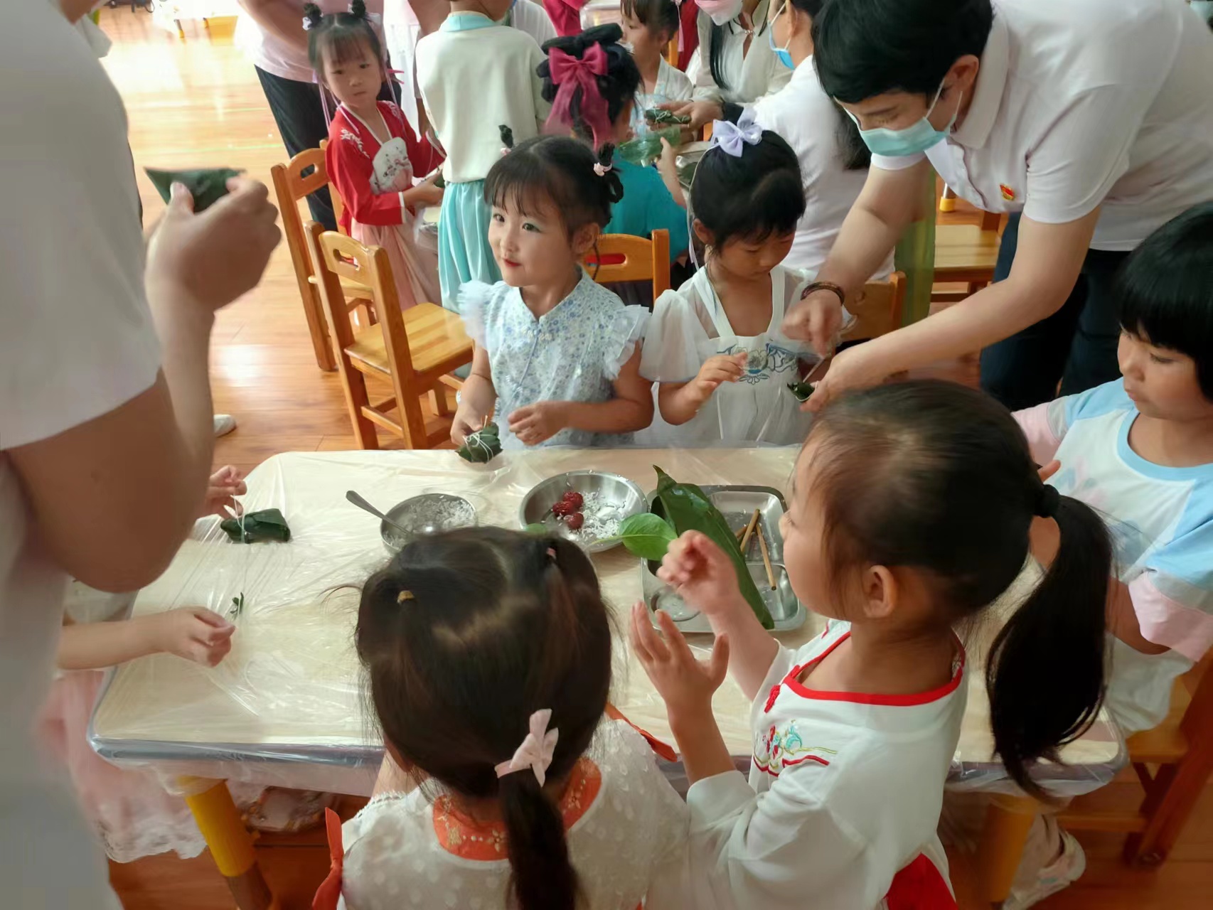 一年一度的“六一”兒童節(jié)和傳統(tǒng)節(jié)日端午節(jié)陸續(xù)走來(lái), 5月31日,周口市文昌幼兒園開(kāi)展端午情濃, 粽享“六一”活動(dòng)。小朋友們?cè)诶蠋煹膸ьI(lǐng)下,了解端午節(jié)來(lái)歷、學(xué)包粽子、齊唱《端午兒歌》,孩子們?cè)诒M享節(jié)日快樂(lè)的同時(shí),又了解了傳統(tǒng)節(jié)日文化。