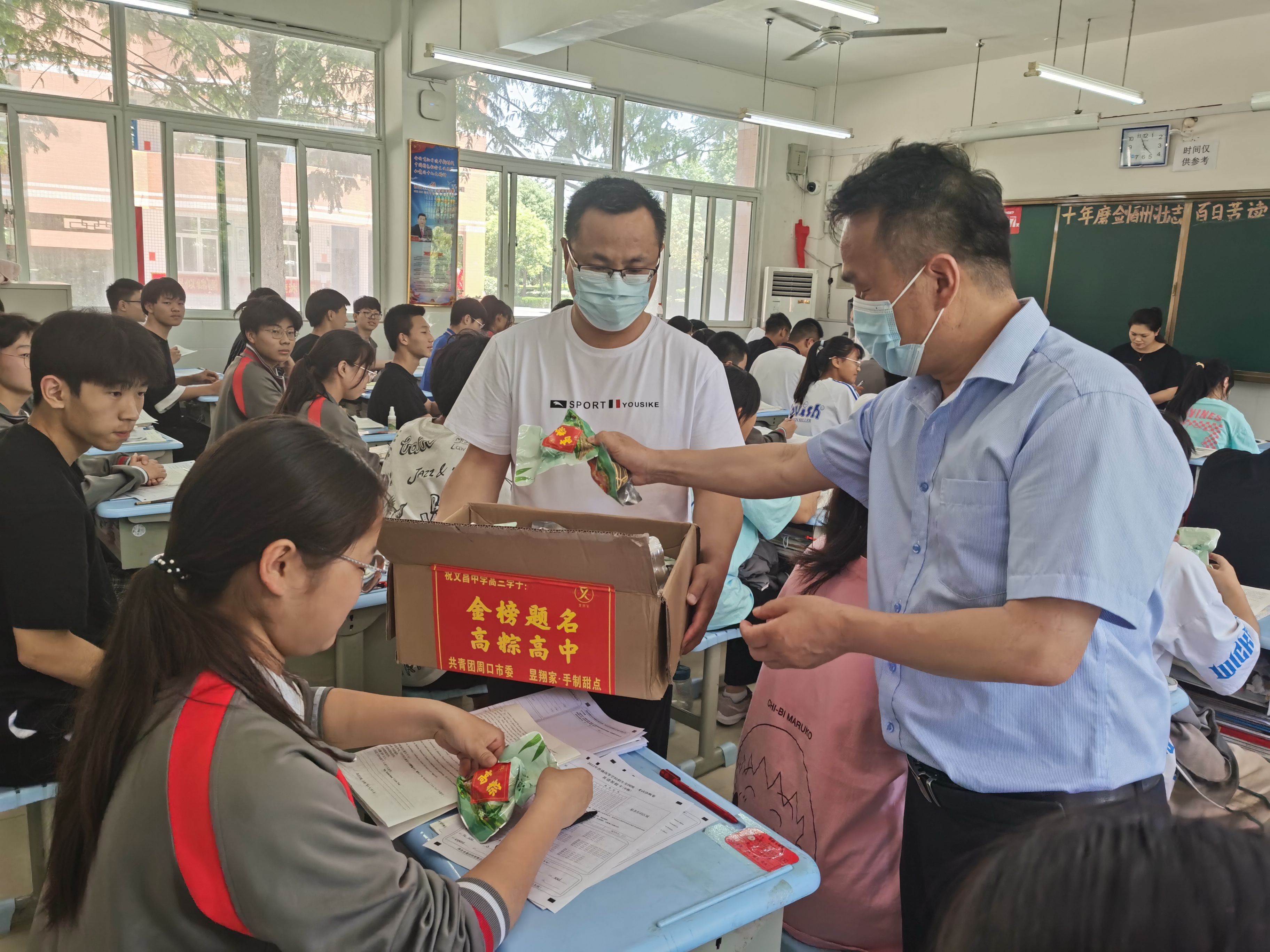 為大力弘揚(yáng)“崇德向善、奮勇爭先”的“周口精神”,加強(qiáng)學(xué)生愛國主義教育,傳承中華優(yōu)秀傳統(tǒng)文化,舒緩高三學(xué)生備考壓力,5月30日,團(tuán)市委聯(lián)合愛心企業(yè)到周口市文昌中學(xué)開展“踐行‘周口精神’,助力高考”主題活動(dòng)。