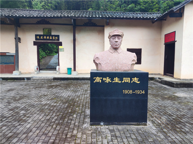 舊址前廣場上,有高詠生烈士石刻雕像。他頭戴紅軍帽,目光如炬,深情地望著遠(yuǎn)處的蒼茫青山,流露出欣慰的笑容。記者輕輕撫摸雕像。此時此刻,沉默恰是最好的語言。