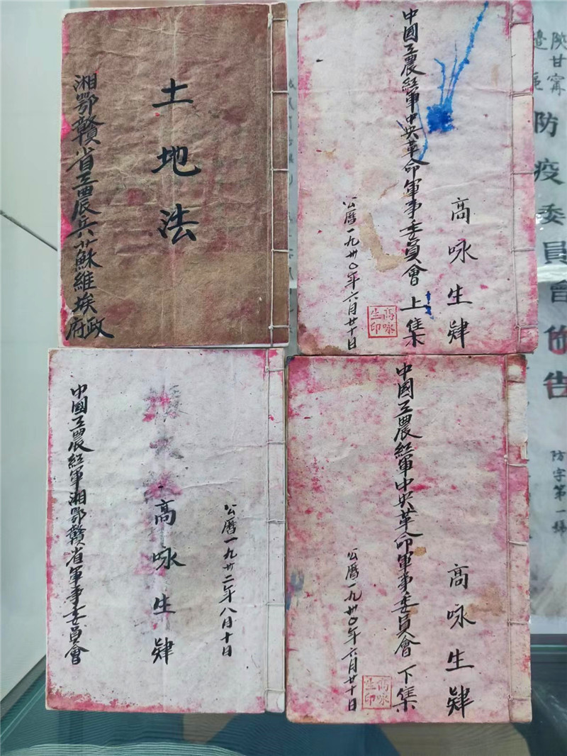 李洪東收藏的高詠生手寫筆記共有四本,包括高詠生用毛筆抄寫的公文《中國工農(nóng)紅軍中央革命軍事委員會》文件上集和下集、《湘鄂贛省工農(nóng)兵蘇維埃政府土地法》、1932年書寫的文件《目前擴大紅軍的計劃大綱》。文件上面都有“高詠生肄”幾個字,蓋“高詠生印”大紅印章。