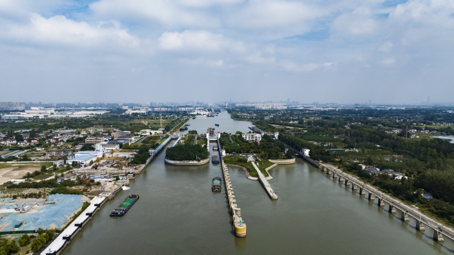 9月27日上午,“豫貨出海、周向世界”采訪組B組來到位于揚(yáng)州市長江北岸的施橋船閘。古鎮(zhèn)施橋,長江與大運(yùn)河在這里交匯,施橋船閘就位于這個(gè)交匯點(diǎn)上。