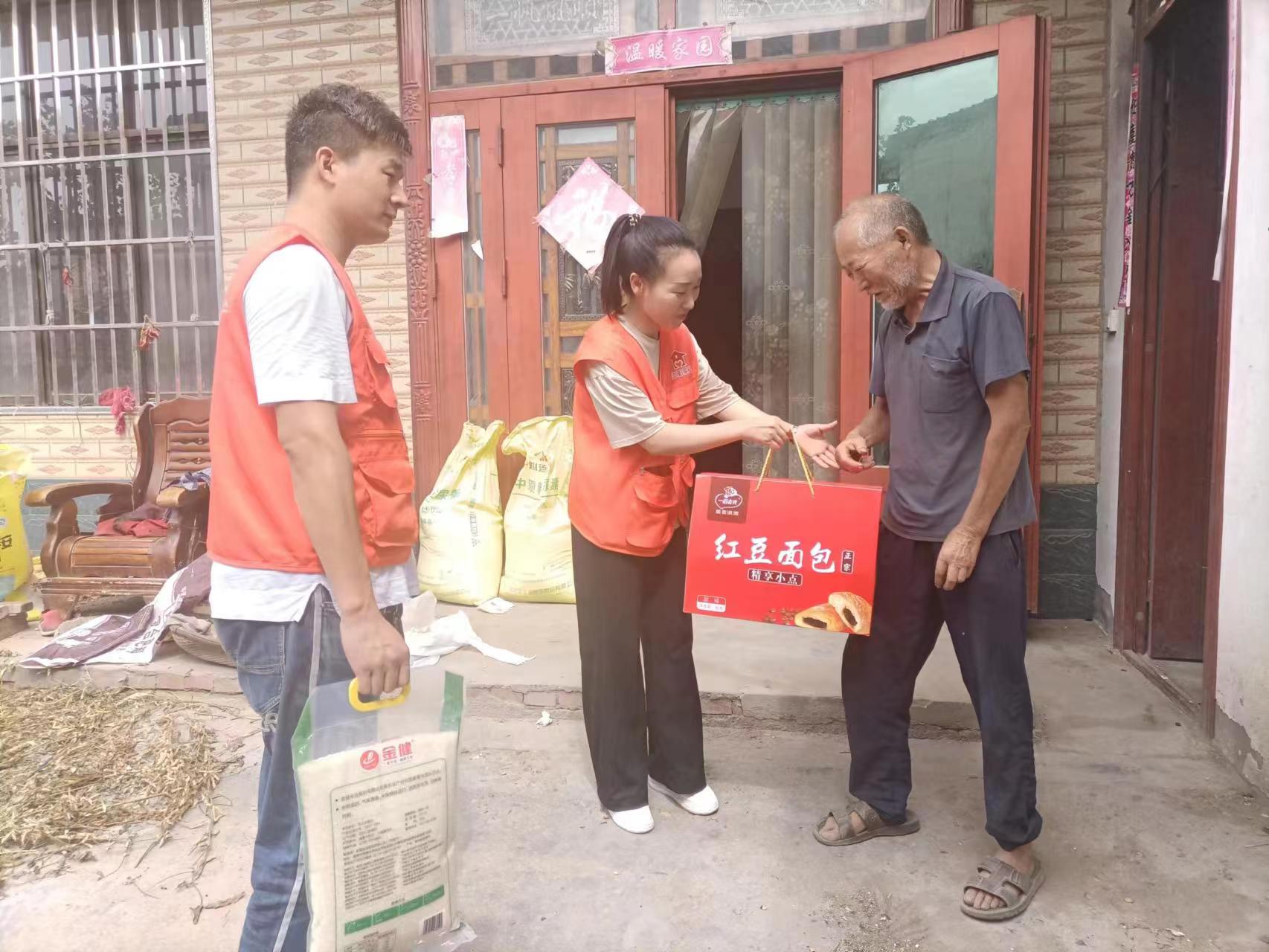 義演活動(dòng)結(jié)束后,志愿者們帶著大米、面包等物品分組前往西營行政村、魏寨行政村、支亭行政村看望行動(dòng)不便的老人。