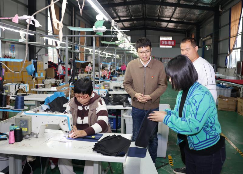 同樣在村頭撈到金的還有返鄉(xiāng)創(chuàng)業(yè)者趙國興。趙國興早年在南方某箱包廠打工并成為經理。在沿海城市產業(yè)轉移的大潮下,趙國興收到了家鄉(xiāng)的呼喚,毅然帶著妻子返鄉(xiāng),租賃村里的扶貧車間辦起了眾誠箱包有限公司。
