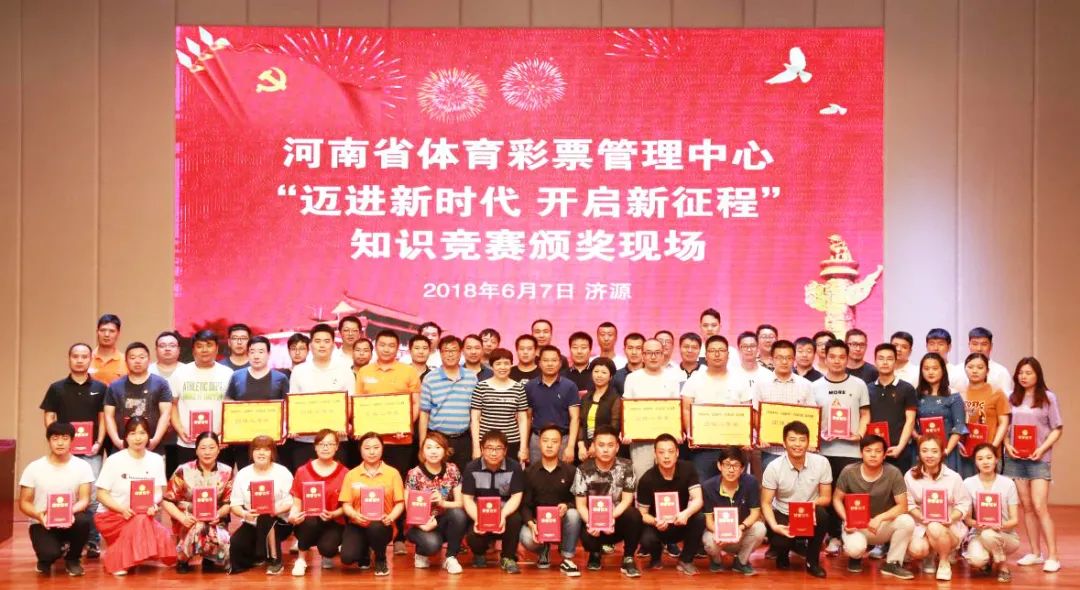 2018年6月,河南省體彩中心“邁進(jìn)新時(shí)代 開(kāi)啟新征程”知識(shí)競(jìng)賽頒獎(jiǎng)現(xiàn)場(chǎng)