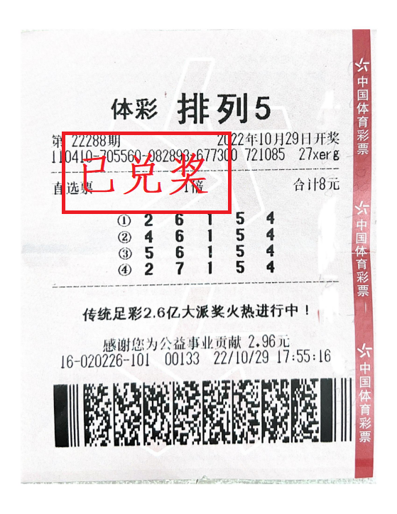 河南省體育彩票管理中心周口分中心兌獎(jiǎng)大廳11月1日迎來了幸運(yùn)購彩者王先生(化名)。10月29日,排列5第22288期開出號(hào)碼“5、6、1、5、4”,周口市區(qū)購彩者收獲“排列5”直選1注,攬獲獎(jiǎng)金10萬元。