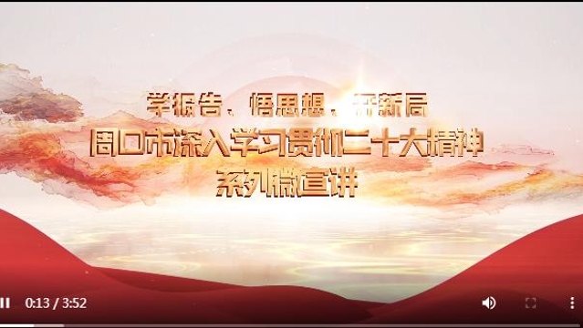 ?為深入學(xué)習(xí)貫徹黨的二十大精神,中共周口市委宣傳部、中共周口市委黨校和周口報業(yè)傳媒集團(tuán)共同制作“學(xué)報告 悟思想 開新局”系列宣講微視頻,將分專題陸續(xù)推出。