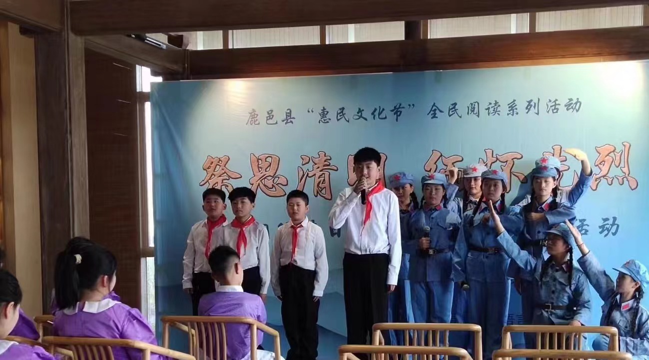 活動由該縣文化廣電和旅游局主辦,縣圖書館承辦,旨在緬懷追憶革命先烈英雄事跡,持續(xù)深化“惠民文化節(jié)”全民閱讀系列活動,向青少年學(xué)生普及清明節(jié)文化知識。當(dāng)日,在該縣圖書館三樓,縣圖書館工作人員講述全縣部分革命先烈英雄事跡和悲壯故事;縣文化廣電和旅游局工作人員講解清明節(jié)由來、清明節(jié)習(xí)俗、清明節(jié)為什么要文明祭祀、清明節(jié)為什么要祭祀和掃墓等知識;身著“小八路軍裝”的青少年學(xué)生依次登臺,聲情并茂地朗誦《中國人清明節(jié)》《清明的雨》《我愛你中國》《鄉(xiāng)愁》《清明詩詞》《不朽》《青松禮贊》《穿越時空的對話》等經(jīng)典詩詞,表達(dá)對革命先烈的無限崇敬和緬懷。