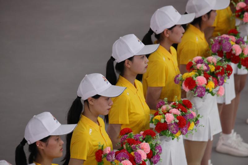 閉幕式上志愿者手持鮮花歡迎各地來(lái)賓。記者 劉俊濤 攝