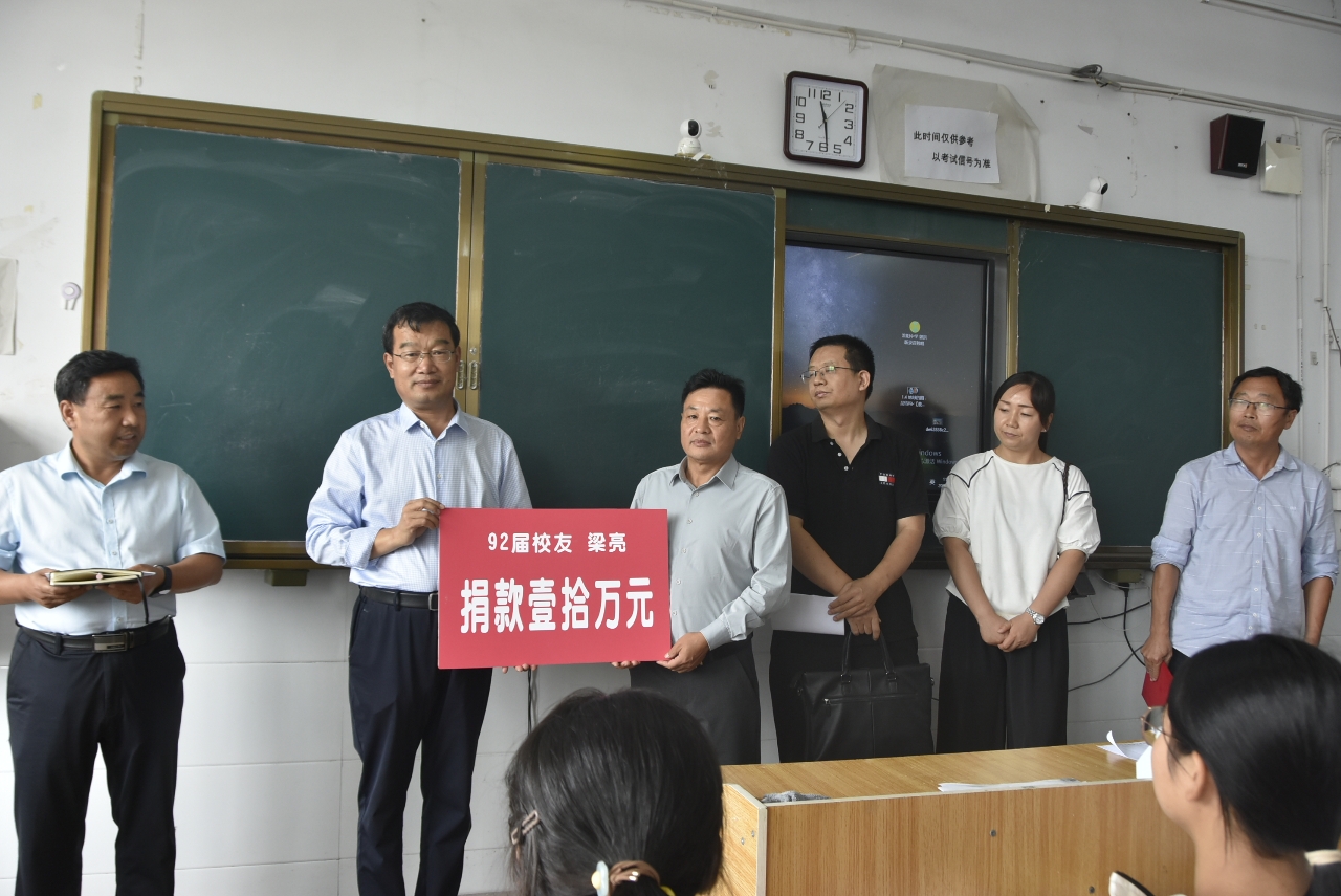 梁亮在發(fā)言中回憶了自己在母校求學(xué)時(shí)的點(diǎn)點(diǎn)滴滴,他感恩母校老師當(dāng)年的辛勤培養(yǎng),解釋了捐贈(zèng)的初衷,并莊嚴(yán)承諾:只要自己的企業(yè)不倒閉,就會(huì)把這項(xiàng)公益事業(yè)一直做下去。他希望“大梁班”全體同學(xué)聽老師的話,做規(guī)范的事。不怕苦,不怕累,找對(duì)學(xué)習(xí)方法,合理分配時(shí)間,想法設(shè)法提高學(xué)習(xí)效率,抵制一切不良誘惑,一心用在學(xué)習(xí)上。他祝愿全體同學(xué)都能考入自己理想的大學(xué),一定會(huì)實(shí)現(xiàn)自己的夢想!
