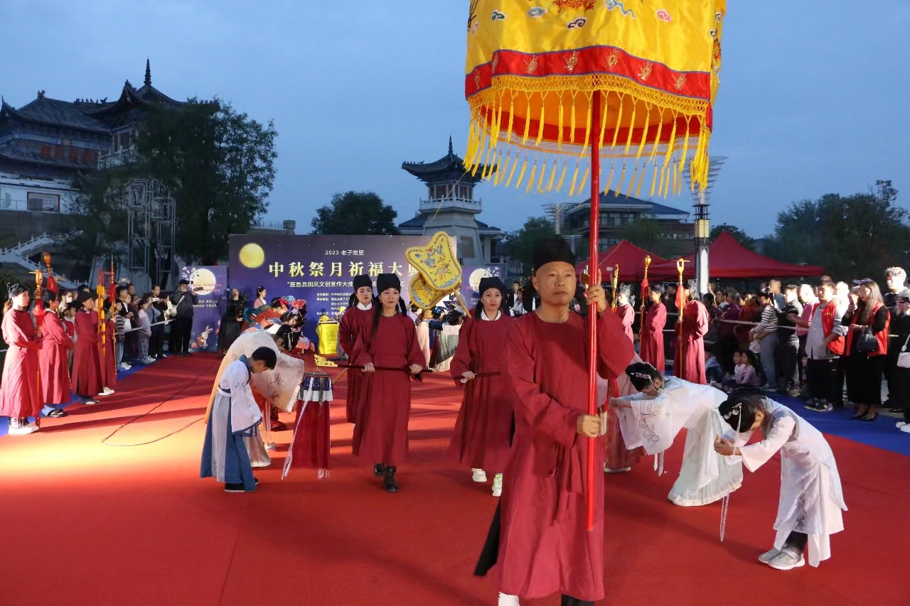 9月29日晚,“2023·老子故里第三屆中秋祭月祈福大典”在鹿邑縣旅游集散中心舉行。
