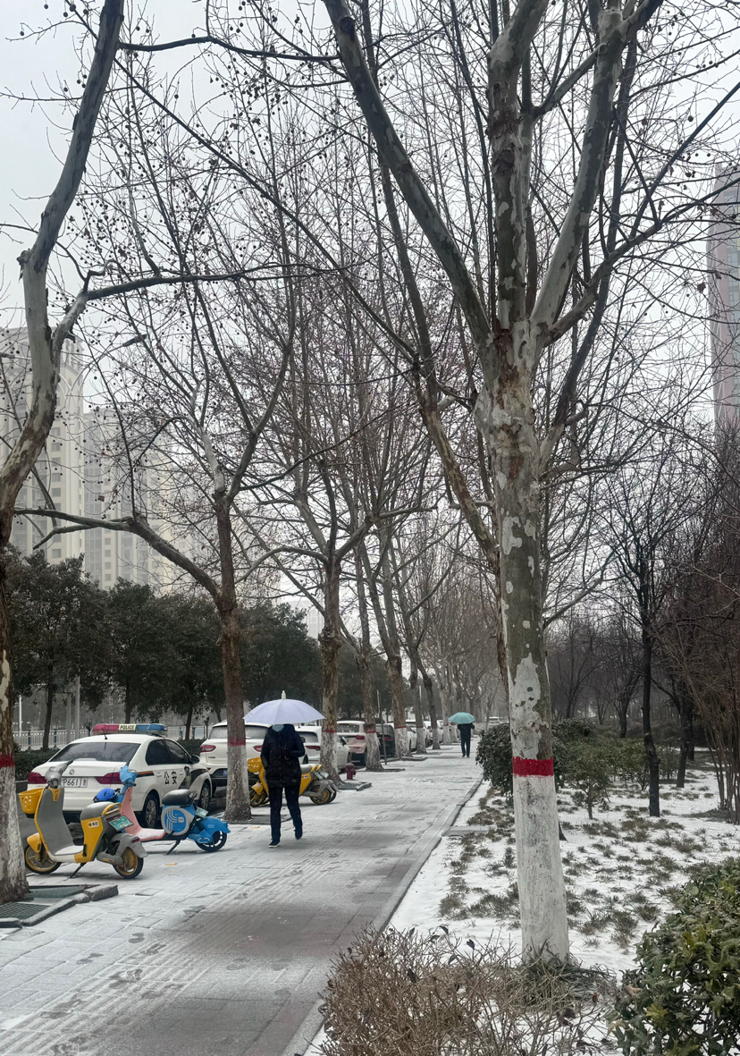 2月20日,我市中心城區(qū)受冷空氣影響氣溫驟降,甲辰龍年首場降雪悄然而至。天空中密密麻麻的白色的“雪粒兒”隨風(fēng)飄揚,給大地鋪上了一層“白珍珠”。