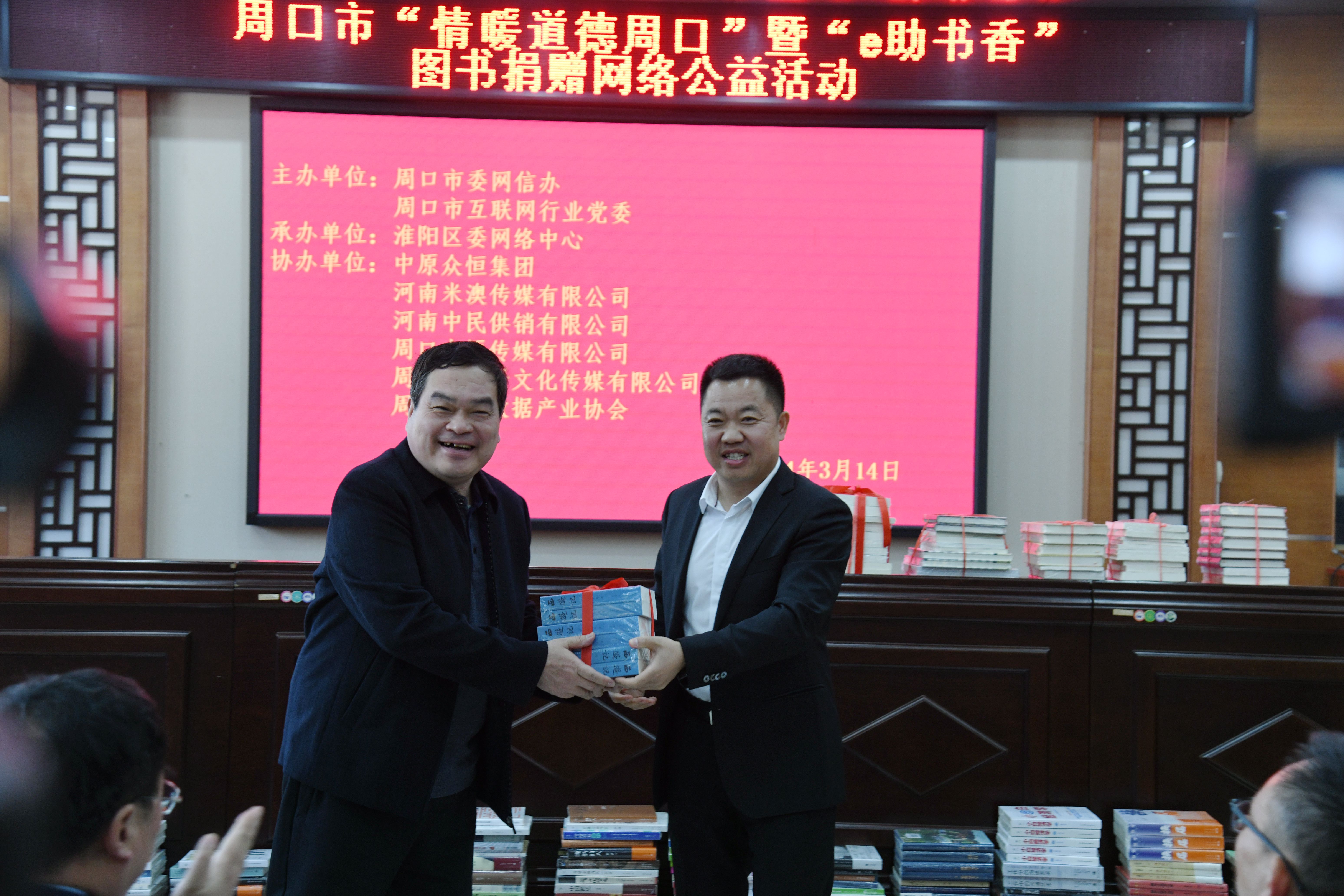 3月14日,由周口市委網(wǎng)信辦、周口市互聯(lián)網(wǎng)行業(yè)黨委主辦的“情暖道德周口”暨“e助書香”圖書捐贈(zèng)網(wǎng)絡(luò)公益活動(dòng)在淮陽區(qū)舉行。我市6家愛心企業(yè)聯(lián)合捐贈(zèng)一批圖書,為正在火熱進(jìn)行的伏羲書展助上一臂之力。