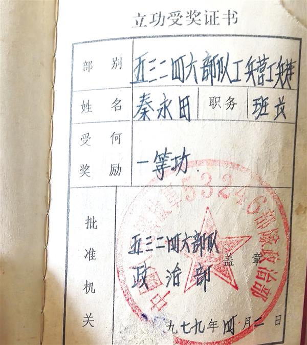 談及應(yīng)征入伍的往事,這里還有一個小插曲?!?974年年底,在縣武裝部組織的一次學(xué)習(xí)培訓(xùn)期間,我在院子里撿到一張參軍報名表,便毫不猶豫地填寫好交了上去。”秦永田告訴記者,后來,在村干部的幫助下,他順利通過入伍前的體檢和政審,如愿成為一名新兵,年僅19歲。