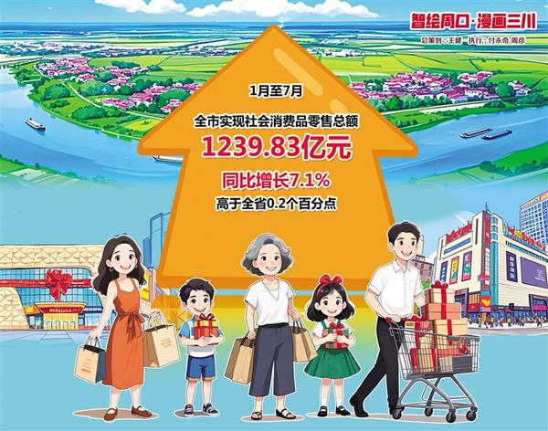 1月至7月,全市實現(xiàn)社會消費品零售總額1239.83億元,同比增長7.1%,高于全省0.2個百分點;市場活力足,通訊器材、家電、化妝品等升級類商品銷售表現(xiàn)亮眼,分別增長56.8%、33.3%、26.6%。 記者 付永奇 周彥 文/圖