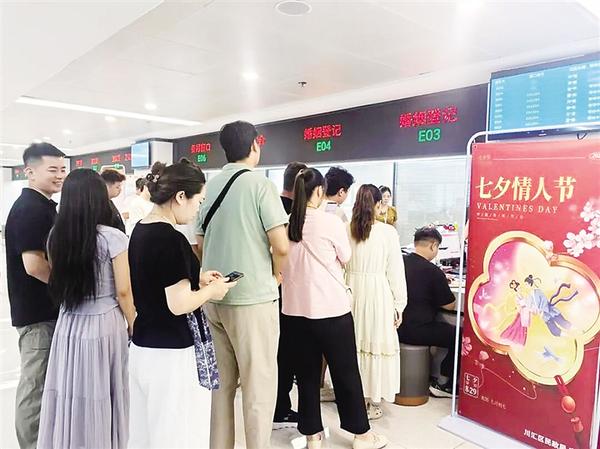 近年來,隨著人們對傳統(tǒng)節(jié)日和文化的重視,像七夕節(jié)這樣富有文化內(nèi)涵的傳統(tǒng)節(jié)日,成為新人辦理結(jié)婚登記的熱門選擇。此外,因諧音寓意美好而備受青睞的“520”“521”等“數(shù)字節(jié)日”,也保持著較高的結(jié)婚登記熱度。為積極應對此次結(jié)婚登記高峰,確保每對新人都能高效、便捷、順利地完成結(jié)婚登記,川匯區(qū)民政局婚姻登記處提前制訂了工作預案。