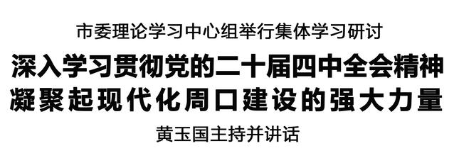 本報(bào)訊 (記者 王艷) 11月8日,市委理論學(xué)習(xí)中心組舉行集體學(xué)習(xí)研討,深入學(xué)習(xí)貫徹黨的二十屆四中全會(huì)精神,示范帶動(dòng)全市各級(jí)黨組織和廣大黨員干部興起學(xué)習(xí)貫徹?zé)岢?,凝聚起現(xiàn)代化周口建設(shè)的強(qiáng)大力量。市委書記黃玉國(guó)主持并講話。