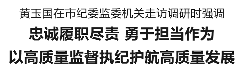 本報訊(記者 王艷) 12月5日,市委書記黃玉國到市紀委監(jiān)委機關(guān)走訪調(diào)研,強調(diào)要深入學(xué)習貫徹習近平總書記關(guān)于黨的自我革命的重要思想和在河南考察時重要講話精神,忠誠履職盡責,勇于擔當作為,不斷推動全面從嚴治黨、黨風廉政建設(shè)和反腐敗斗爭向縱深發(fā)展,以高質(zhì)量監(jiān)督執(zhí)紀護航高質(zhì)量發(fā)展。