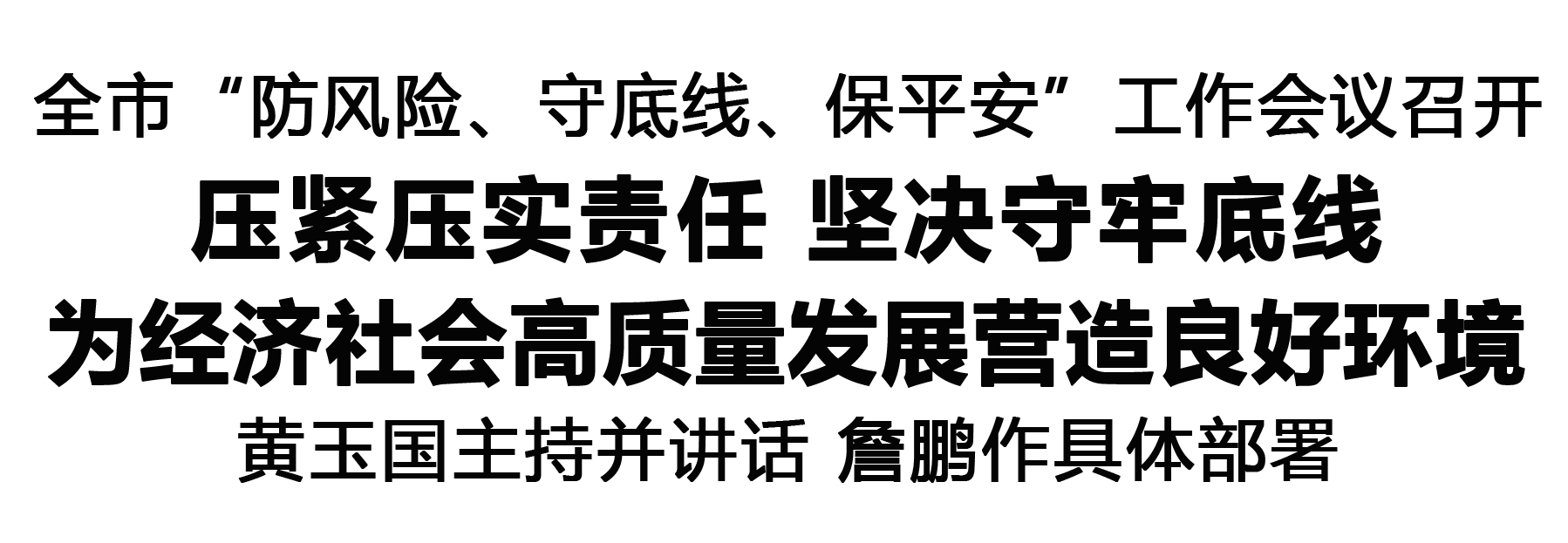 會議指出,歲末年初是安全生產事故易發(fā)多發(fā)期。全市上下要切實提高政治站位,牢固樹立底線思維、極限思維,保持清醒憂患,堅持關口前移、源頭管控,以“時時放心不下”的責任感,扎實細致做好防風險、守底線、保平安各項工作,堅決防范各類重大風險隱患,確保全市社會大局安全穩(wěn)定。