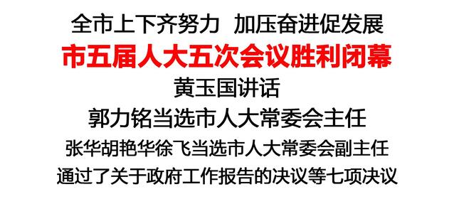 根據(jù)選舉結(jié)果,郭力銘當(dāng)選周口市第五屆人民代表大會(huì)常務(wù)委員會(huì)主任,張華、胡艷華、徐飛當(dāng)選周口市第五屆人民代表大會(huì)常務(wù)委員會(huì)副主任,胡東河當(dāng)選周口市第五屆人民代表大會(huì)常務(wù)委員會(huì)秘書長(zhǎng),王軍、郝強(qiáng)、段然、賈衛(wèi)東當(dāng)選周口市第五屆人民代表大會(huì)常務(wù)委員會(huì)委員。