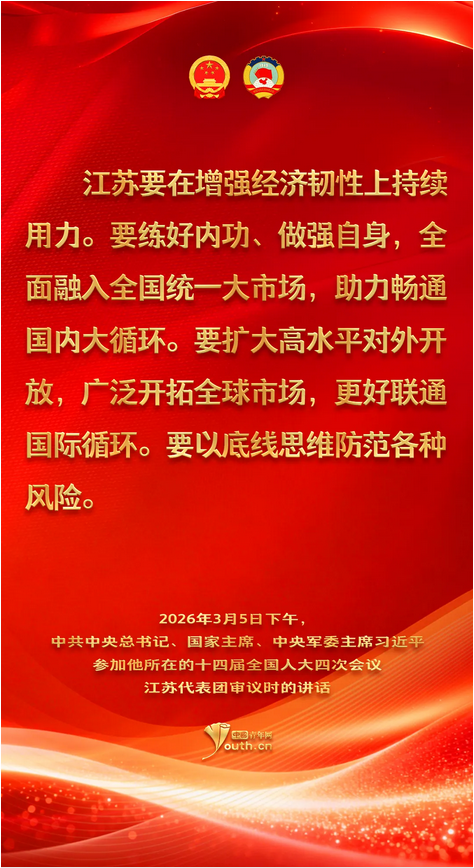 “新”的要求,是包括江蘇在內(nèi)的全國各地都需要思考的發(fā)展題目。經(jīng)濟大省“要在研究新情況、解決新問題上下功夫、出經(jīng)驗”,靠什么?靠的是敢闖無人區(qū)、敢啃硬骨頭的銳氣。當(dāng)下,外部環(huán)境更趨復(fù)雜,深層次矛盾有待破解,高質(zhì)量發(fā)展需要更大的推動力。江蘇處在改革開放前沿,必然要在高質(zhì)量發(fā)展方面干出實績、闖出經(jīng)驗。
