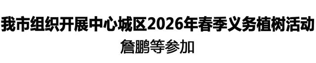詹鵬強(qiáng)調(diào),植樹造林是功在當(dāng)代、利在千秋的崇高事業(yè)。要深入踐行習(xí)近平生態(tài)文明思想,牢固樹立綠水青山就是金山銀山的理念,堅(jiān)持?jǐn)U綠、興綠、護(hù)綠并舉,因地制宜推進(jìn)大規(guī)模國土綠化行動(dòng),統(tǒng)籌抓好森林城市建設(shè)、生態(tài)廊道建設(shè)、農(nóng)田防護(hù)林建設(shè)和鄉(xiāng)村綠化美化工程,擴(kuò)大城鄉(xiāng)綠色空間,筑牢生態(tài)保護(hù)屏障,著力改善人居環(huán)境,加快建設(shè)人與自然和諧共生的美麗周口。要搶抓春季造林黃金時(shí)節(jié),堅(jiān)持領(lǐng)導(dǎo)帶頭、率先垂范,廣泛動(dòng)員群眾開展義務(wù)植樹活動(dòng),以生態(tài)建設(shè)實(shí)效守護(hù)周口的碧水藍(lán)天。