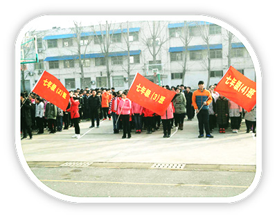 學(xué)校教學(xué)樓一角1、分部管理、分級(jí)段協(xié)調(diào)。 分部管理、分級(jí)段協(xié)調(diào)是我校改革創(chuàng)新的最大舉措。學(xué)校分為四個(gè)教學(xué)管理部,每個(gè)教學(xué)管理部管理七、八、九各兩個(gè)班級(jí),部與部是競(jìng)爭(zhēng)加合作的關(guān)系。這樣既實(shí)現(xiàn)了精細(xì)化管理又極大地調(diào)動(dòng)了教師的積極性,解決了中小學(xué)教師普遍存在的"職業(yè)倦怠現(xiàn)象"。