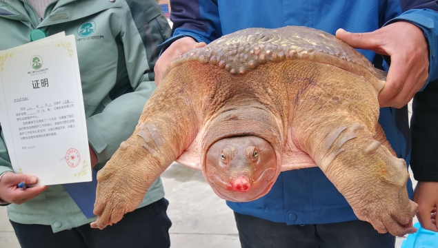 近日,鄲城縣自然資源局接到縣城市管理局公園管理辦公室工作人員救助電話,稱在人民公園岸邊又發(fā)現(xiàn)一只“大老鱉”。接到救助電話后,該局領(lǐng)導(dǎo)立即指派野生動植物保護(hù)和自然保護(hù)地管理股工作人員前往現(xiàn)場救助?!?a href="http://m.40max.com/content/2021-03/23/content_925978.html" target="_blank" >[詳細(xì)]