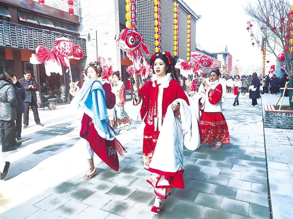 翠袖紅裙、直襟長袍……身著漢服的演員,手持魚燈,巡游關(guān)帝老街,伴隨著樂曲翩翩起舞,成為一道靚麗的風(fēng)景線。[詳細(xì)]